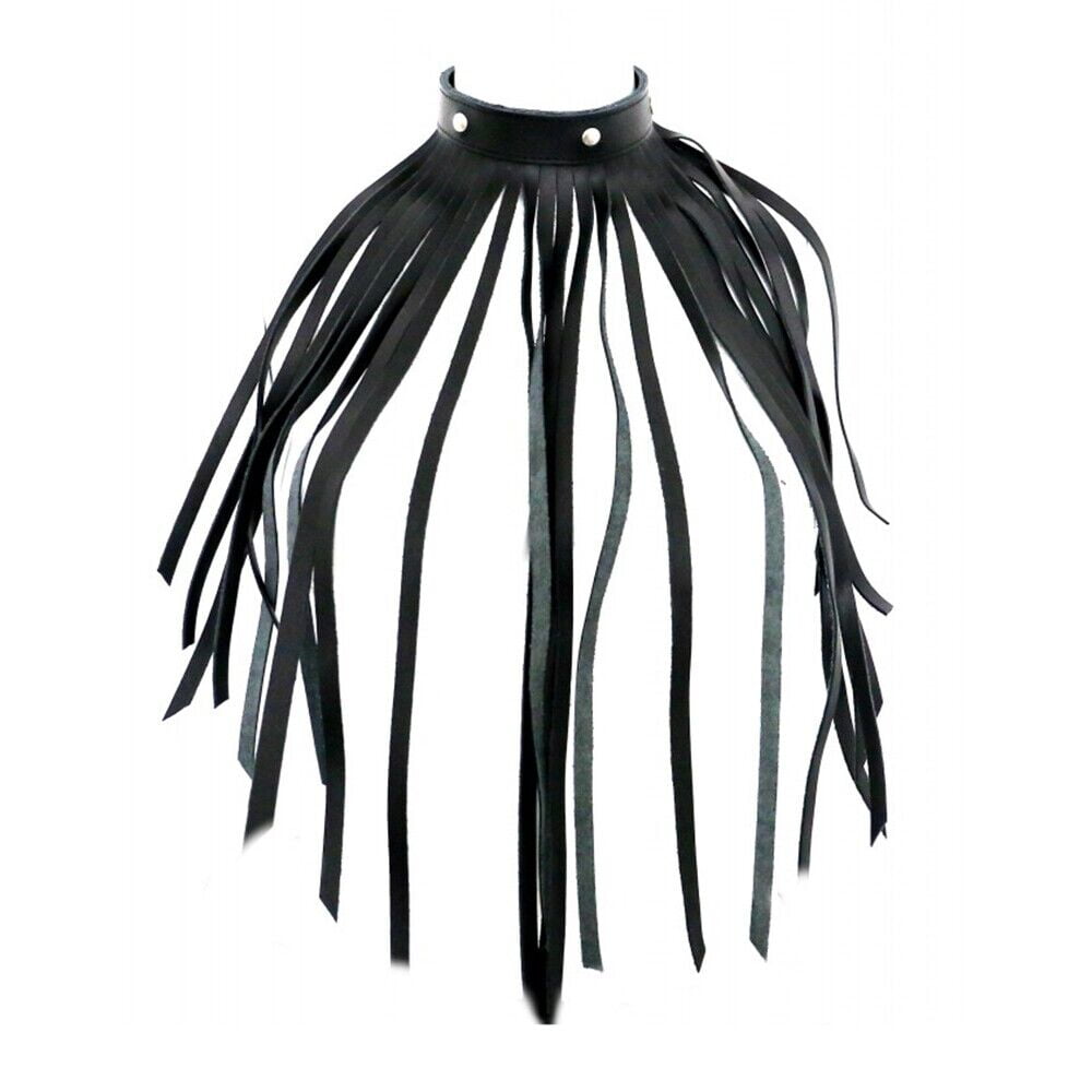 This striking collar features a gradient of light, fine fringes, with a maximum length of 45cm. Each fringe is meticulously crafted, ensuring a fashionable edge while maintaining comfort. The adjustable leather neckpiece accommodates neck sizes ranging from 30 to 45cm, making it suitable for a variety of body types. With a width of 2.5cm, this collar is designed to be both eye-catching and comfortable for daily wear.