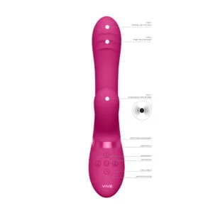 The Vive Tani offers an exhilarating climax function. When you’re nearing your peak, just one touch of the special function button will activate all motors to maximum intensity. This powerful pulsating pleasure device guarantees to take you to an earth-shattering orgasm, satisfying your every need.