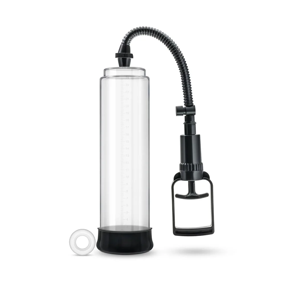 The Performance VX3 Enhancement System includes a precision-engineered vacuum chamber, trigger pump, and a soft removable airtight seal. The clear vacuum chamber measures 2.5 inches wide and 10 inches in total length, comfortably accommodating users up to 9.25 inches. Adjusting the intensity is easy with the two-finger pump control handle, and the quick-release valve ensures instant pressure release whenever needed.
