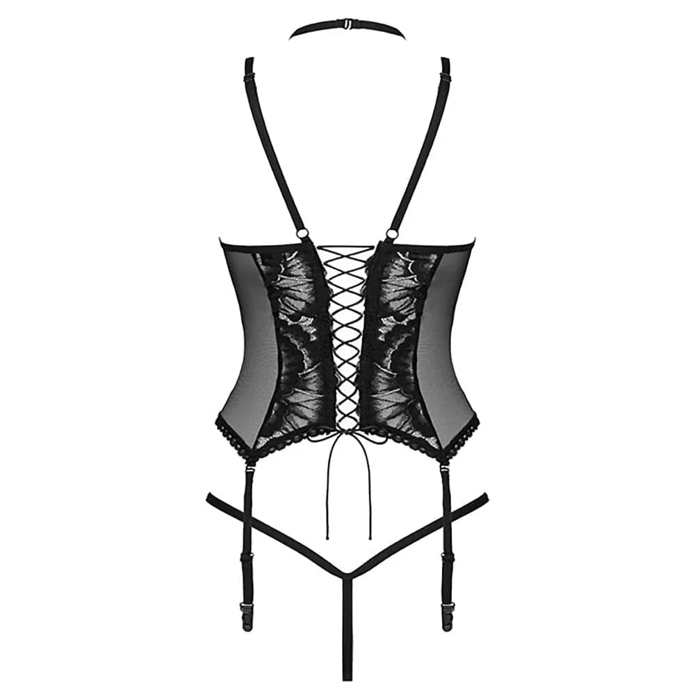 The Obsessive Alessya Corset is a stunning piece of seductive lace lingerie that elevates your intimate apparel collection. This exquisite lace corset set is crafted from eye-catching, delicate lace and powernet, ensuring a comfortable fit while being irresistibly alluring. Perfect for romantic evenings or special occasions, this corset combines elegance and sensuality effortlessly.