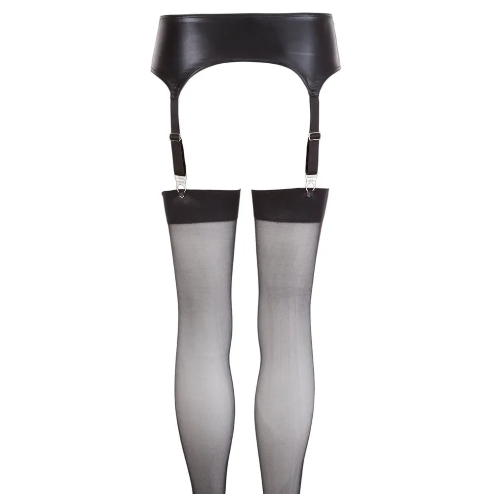 The Wet Look Suspender Belt and matching stockings set is the ultimate erotic lingerie classic for the modern woman. This alluring ensemble flaunts a sleek design that effortlessly combines luxury and a hint of fetish flair. Crafted from high-quality materials, this suspender belt not only looks stunning but also provides a comfortable fit, making it perfect for any intimate occasion.